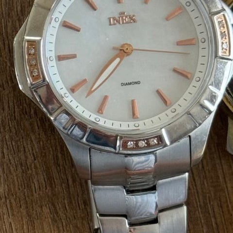 Veldig lite brukt Inex klokke med 4 diamanter A69462B4P.