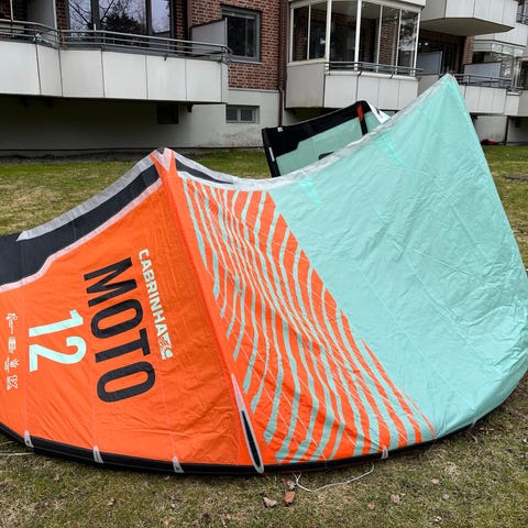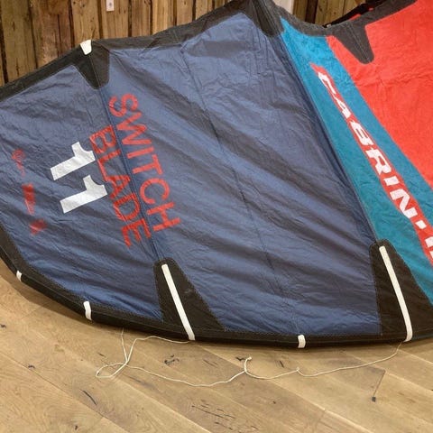 Har en prof rep nær strut i duken. Kan ses på 4. Bilde. Ellers rigtig fin stand. Kan brukes med en cabrinha, north, duotone bar.