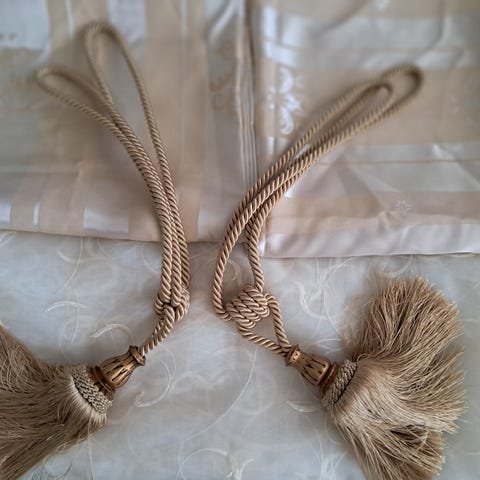 2 stk. Hvite gardinsnorer. Lite og pent brukt.