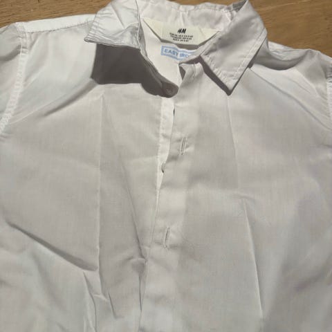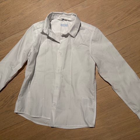 Pen hvit skjorte gutt str 6-7 selges rimelig kr 100.- Kan sende om kjøper dekker porto!