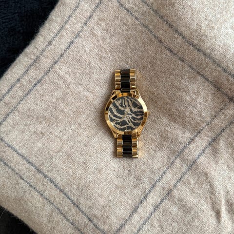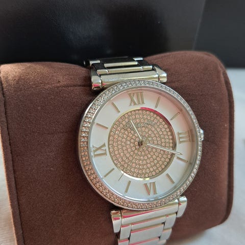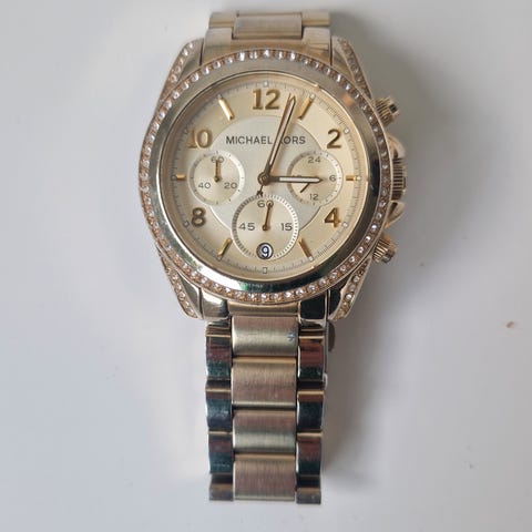 Michael Kors klokke. Har en ripe, se bilde. Ellers i fin stand. Trenger nytt batteri.