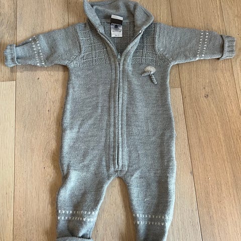 Nydelig grå ullfleecedress fra Reflex str 50 selges. Søt liten elefant brodert på.