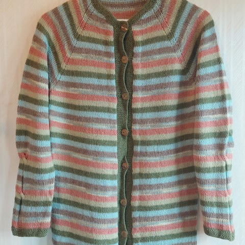 Den først er av Mohair. Jeg håndstrikket den selv! Kragen kan varieres i forskjellig former som bilder viser! 590kr