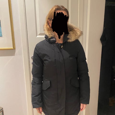 Selger en blå Woolrich jakke. Størrelse M men synes den er liten i størrelsen.