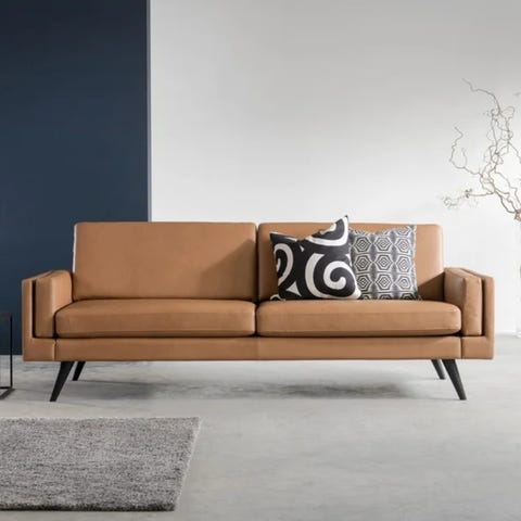 -Brisbane sofa er en sofa av høy kvalitet med 35 kg kaldskum, fibervatt og PU som etterligner antikt skinn. Bena er laget av svart pulverlakkert metall.