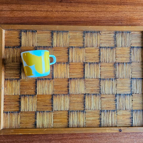 Vintage metallbrett med psykedelisk mønster i grønt og blått. Herlig til servering av den crazy drinken