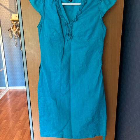 Nydelig turkis kjole selges, kun brukt en gang.