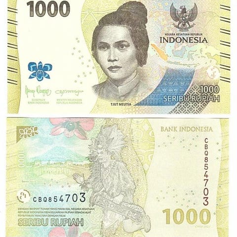Flott usirkulert (UNC) seddel fra Indonesia, introdusert 2020 i forbindelse med 75 års uavhengighets feiring,