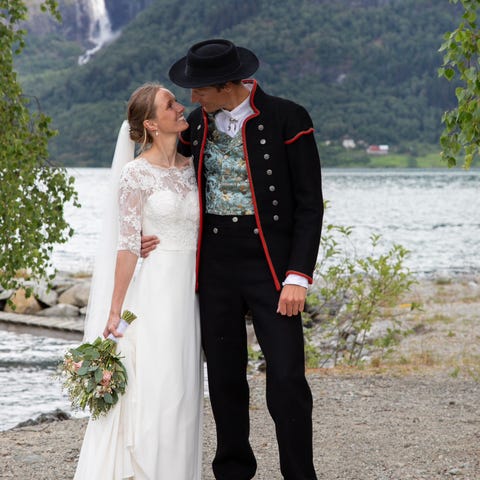 Kun brukt en gang 28.08.21, og kjolen er renset etter bruk. Fremstår som ny. Sydd på belte som kostet 2.690kr. Beltet kan tas av. Kjolen kan sys inn og ut, og legges opp.