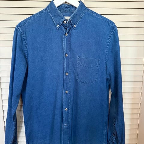 Acne denim skjorte til sags i str 46. Dette tilsvarer en small og har smal passform. Skjorten er lite brukt og er i fin tilstand.