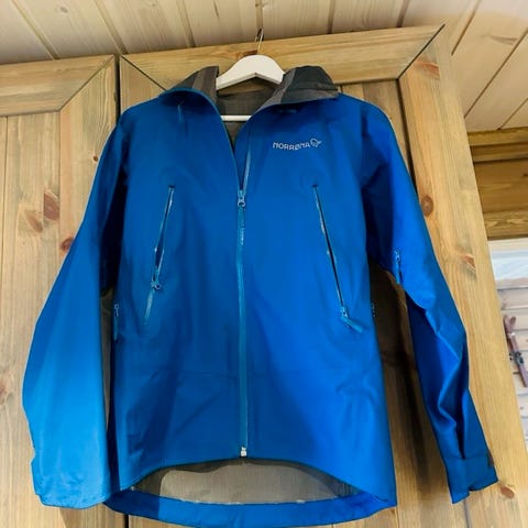 Fint brukt jakke, litt slitasje under armene helt fremme, se bilde. Den er litt stor i størrelsen. Ny pris ca 3000 kr desse jakkene er umulige å få tak i nå pga Norrøna har sluttet med barneklær.