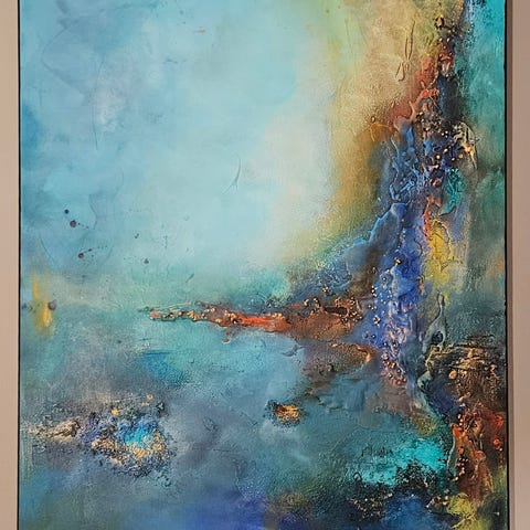 Akrylmaleri/ maleri i str 60•80•4 cm (dyp kant) selges for kr2250. Maling og lerret er i meget god kvalitet. 🎨👩 🎨 Er overflatebehandlet og med ferdig oppheng. Kan sendes med «Norgespakken», trygt og forsvarlig pakket inn. Maleriet kan også sees i Tønsberg/Vear, om ønskelig. Tlf: 97184760. Min Instagramkonto : artbyheidis Nb/Jeg har flere malerier under mine Annonser på Finn, 😊