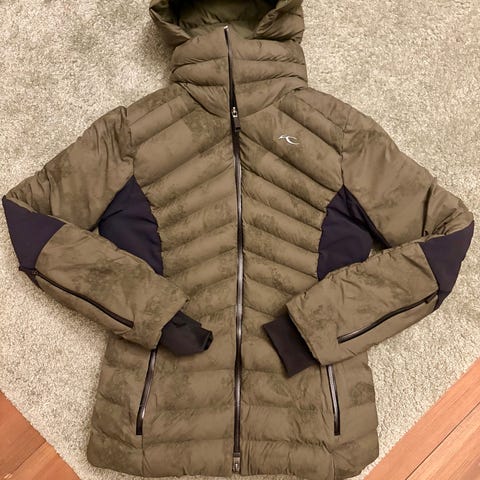 Hull i albue og ved høyre glidelås, ellers helt fin.