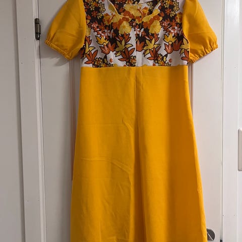 Retro håndsydd gul kjole: B:94cm L:80cm