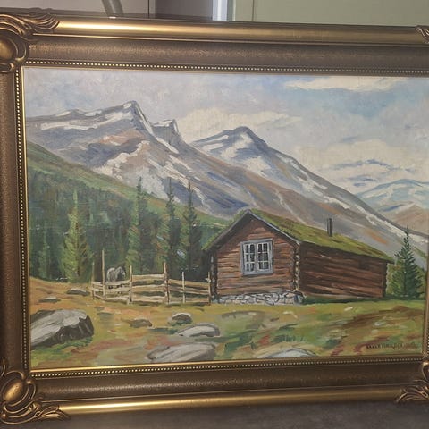 Stort maleri signert Kaare Nerbø- sannsynligvis fra 40/50-tallet