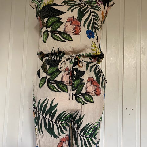 Lekker og delikat jumpsuit fra Sparkz. Vide ben, korte ermer, snøring i livet og i nakken, lett og behagelig å ha på. 100% viskose. Str 36/S. Brukt kun en gang, og fremstår som ny.