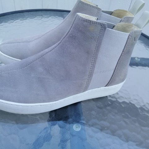 Högl skoletter i str. 4,5 (37,5). Mørk grå semsket med hvit såle. Strikk på siden og glidelås på innsiden. Skoene er ikke foret. Veldig fine og behagelige sko fra kvalitetsleverandøren Høgl.