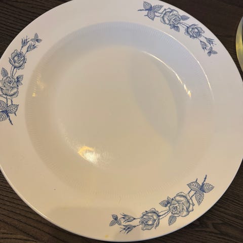 Figgjoflint: Oldemors runde fat med rosa blomster