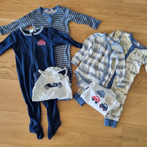 3 fine pysjamaser fra Next i størrelse 3 - 6 måneder. Føtter og brettekanter på armene.