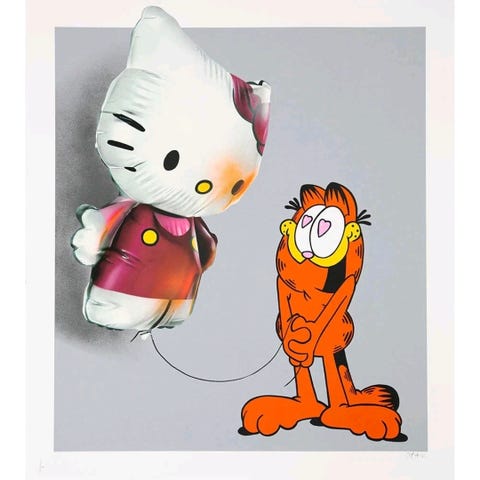 Et varmt og uttrykksfullt trykk på lerret etter originalverk av Pepe Shimada – den japanske kunstneren, poeten og musikeren som har sjarmert katteelskere og kunstpublikum over hele Asia med sine fargerike, poetiske og livsfilosofiske motiver.