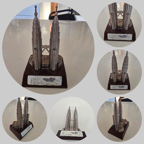 Burj Al Arab miniatyrmodell laget av krystall og gullfarget metall. Modell av det ikoniske hotellet i Dubai med detaljer som vinduer og strukturelle elementer. Passer som dekorasjon eller samleobjekt.