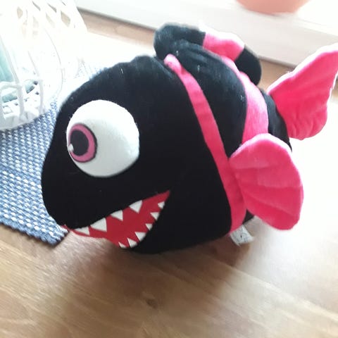 Ny kosedyr FISK med merkelappen på