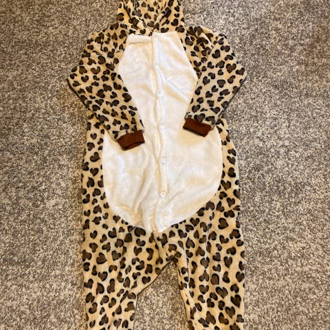 Ubrukt heldress / onepiece / jumpsuit med leopardmønster i tykt joggedresstoff med glidelås.