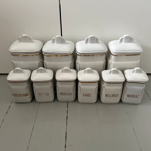 Stor 13 cm høy og 9,5 cm i diameter, liten 8 cm høy og dia 11 cm.