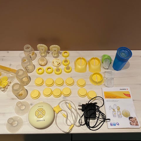 Den er ca. 29 cm. bred og 23 cm. høy. Det er flere rom i vesken samt en stellematte som er ca. 49x27 cm.