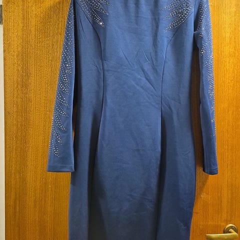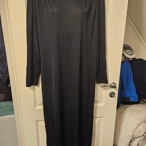 Den er er brukt til å skjule magedanskostymet mitt 3 ganger. Polyester. Str 54/M/L... Jeg vil kalle denne en M🤓