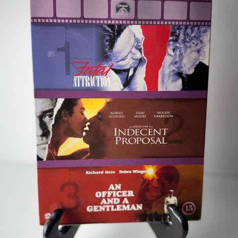3 stk.DVD.Fatal Attraction-Indecent Proposal-An officer and a gentleman.