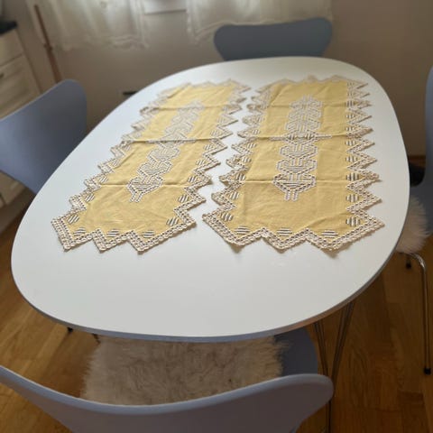 Smijernsoppheng til stort teppe eller åkle., 174,5 cm lang, 16 cm høy. Pent og ingen skrammer.
