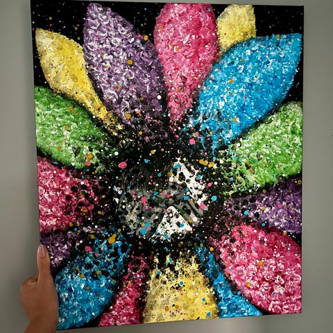 Original maleri, akryl, blømster motiv, kunst