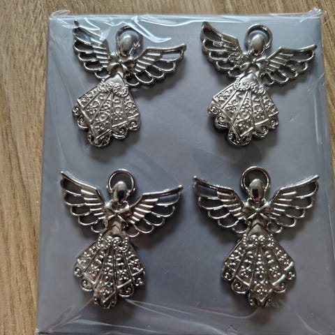 2 fine engler..ca. 10 cm. Grønn/ turkis/ gull. Nye , ubrukt m/ merkelapp.