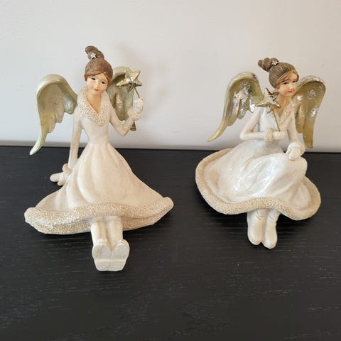 2 fine engler m/ merkelapp .ca. 10 cm. høy...grønn / turkis/ gull. Nye ubrukt med merkelapp..