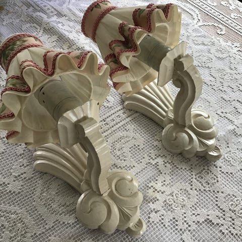 Nydelige vintage lampetter av tre - med utskjæringer / dekor : ledning / bryter og kontakt tlf 91882163 Hegna Bø Telemark