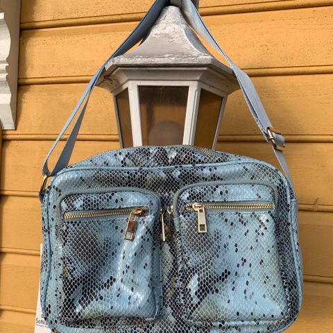 NY Veske Bag Snake Pattern fra Sonize Norwegian Design selges. Aldri prøvd eller brukt. Farge Light Blue. Størrelse 31x20x10 cm.