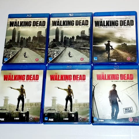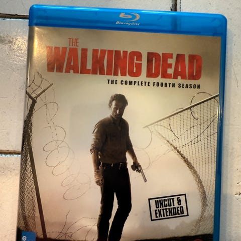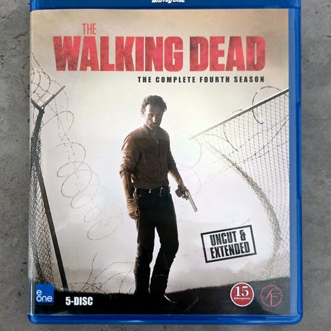 Walking dead sesong 4 på Blu-Rai selges kroner 100. Boksen består av 5 stk blu-rai plater. Blir 20 kr pr skive. Filmene er kun avspilt en gang og er helt fine uten riper og flekker. Coveret er også helt strøkent. Kan hentes på Veitvet i Oslo eller sendes mot porto. FAST PRIS. PRUTING BESVARES IKKE.
