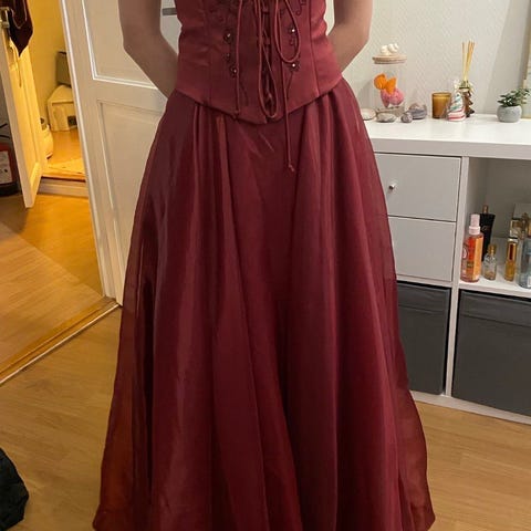 Flott, lang ceriserosa kjole. Følger med tynt sjal. Str S / M