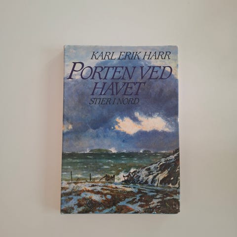 Selger en pen innbundet bok av Karl Erik Harr med tittelen: "Porten ved havet, stier i nord".