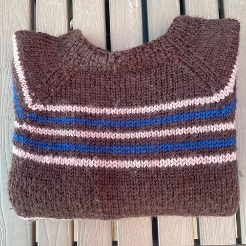 Hjemmestrikket ullgenser - pent brukt. Litt usikker på størrelse, men den har følgende mål: