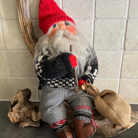 Tre små barn laget av halm, tre og filt