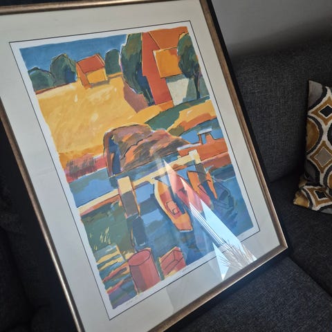 Litografi av Gabrielle Kielland med passepartout og lekker ramme.