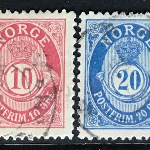 Norge frimerker stemplet, nk 56-58a, 3, 10 og 20 øre centraltr. Fintagget, fine