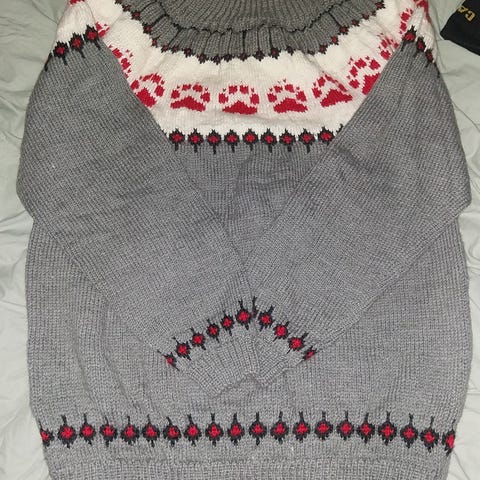Håndstrykket Marius genser i tradisjonelle farger. Genseren er strikket i Merino super wash fra Drops. Den kan vaskes på 40 grader på finvask. Brukt noen få ganger. Genseren er stor og romslig. Det ble manger uker/måneder med arbeid. Den ble mye større enn forventet. Målene er tatt uten å strekke genseren.