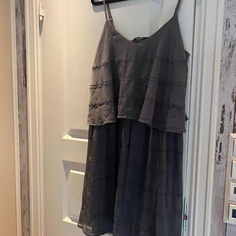 Lekker Chiffon Juicy Couture kjole sort , lite brukt , lekre nagle detaljer langs hals linning og armer , uten ermer . Står M men liten i størrelsen så passer til Small /Liten medium