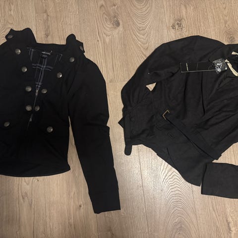 Sort dressjakke / blazer i bomull med morsomt fôr str. 36