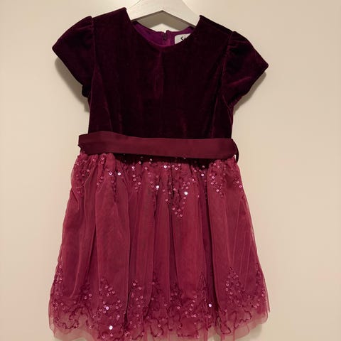 Mørk blå kjole med paljetter fra Salto. Perfekt til fest og høytid. Brukt kun en gang. Str 98/104. Kan sendes med helthjem. Har liknende blå kjole til salgs fra Lindex til søsken.