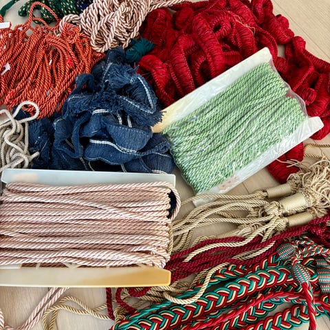 Snorer i mykt materiale som kjennes litt ut som semsket skinn. 10 av hver farge, ca 90 cm lengde per stk. Pris for alle med porto for sending