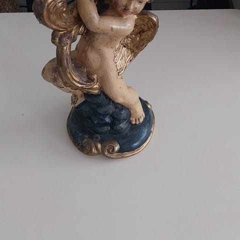 Lysestake med kjerub. Den er 40 cm høy og i fin stand.